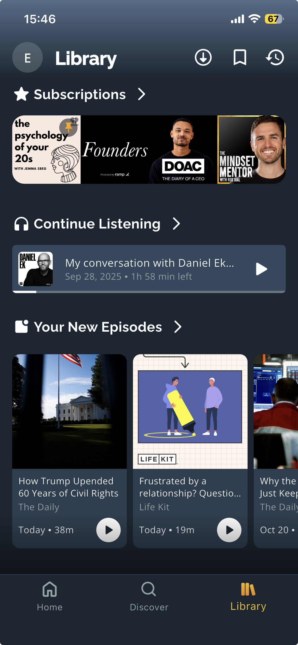 Subscribe to your favorite shows, see new episodes at a glance, save important listens for later, and revisit your history. Luna's clean library makes managing your audio content intuitive and enjoyable.